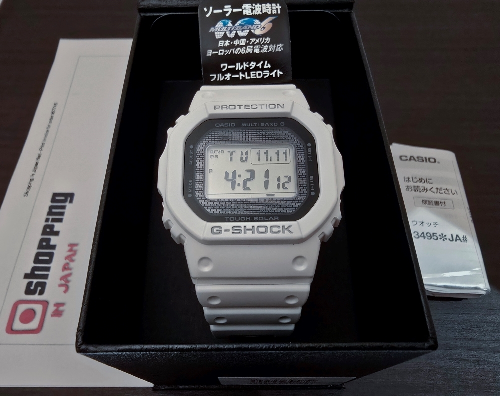 The GW-5000HS-7JF is a premium Japan-made G-SHOCK featuring the iconic screw-back stainless steel case with DLC coating, paired with a clean white bio-resin bezel and band. Powered by Tough Solar and Multi-Band 6 for precise, maintenance-free accuracy, it delivers the classic 5000-series heritage with modern upgrades like LED illumination, 20-bar water resistance, and full shock protection—finished in a rare white-on-black Japanese domestic edition.