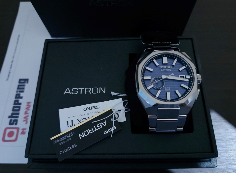 The Astron SBXD013 is a GPS Solar watch featuring a striking blue dial with a pressed crystal pattern reminiscent of the first quartz Astron. Built in lightweight titanium, it offers ±15-second/month precision (without GPS), a perpetual calendar to 2100, and automatic GPS time zone adjustment, blending classic inspiration with modern technology.