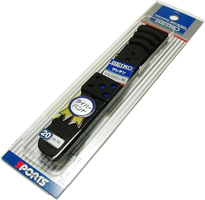 Seiko genuine 20mm urethane rubber strap designed for diver’s watches, offering excellent water resistance, flexibility, and durability. Compatible with many Seiko Prospex diver series models, it’s an ideal replacement strap that ensures a secure and comfortable fit both in and out of the water.